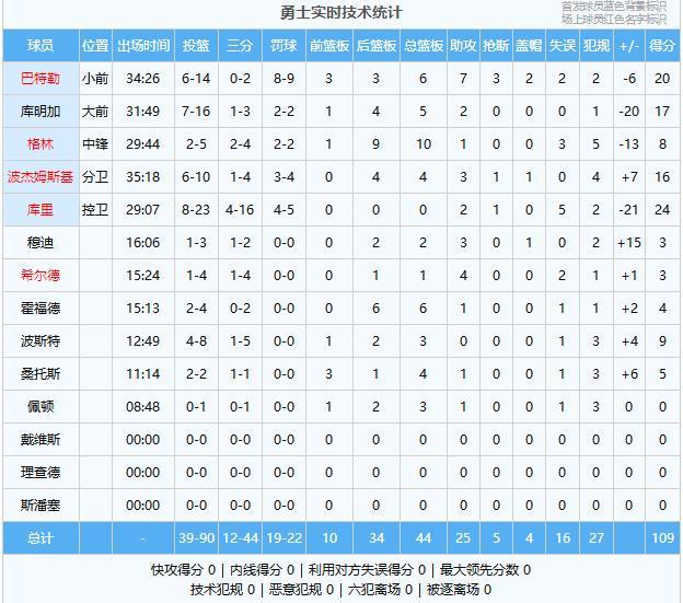 勇士数据:库里24分2助、巴特勒20分6板7助3断2帽、库明加17分5板2助、波杰姆斯基16分4板3助、波斯特9分3板、格林8分10板1助、桑托斯5分4板1助、霍福德4分6板1助、穆迪3分2板3助、希尔德3分1板4助、佩顿3板1助
